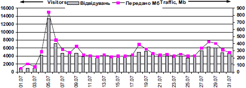 Statistical data in the report presented on the basis of web server and CMS Smereka statistics. Usage of Google analytics data noted separately.
