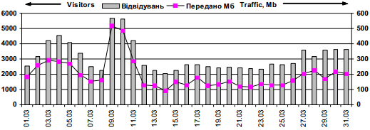 Statistical data in the report presented on the basis of web server and CMS Smereka statistics. Usage of Google analytics data noted separately.