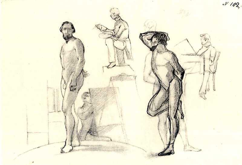 Taras Shevchenko. Sitter in different postures. Etudes. Academy of Arts students. Outline. [1839 – 1840, no later than April. St. Petersburg].