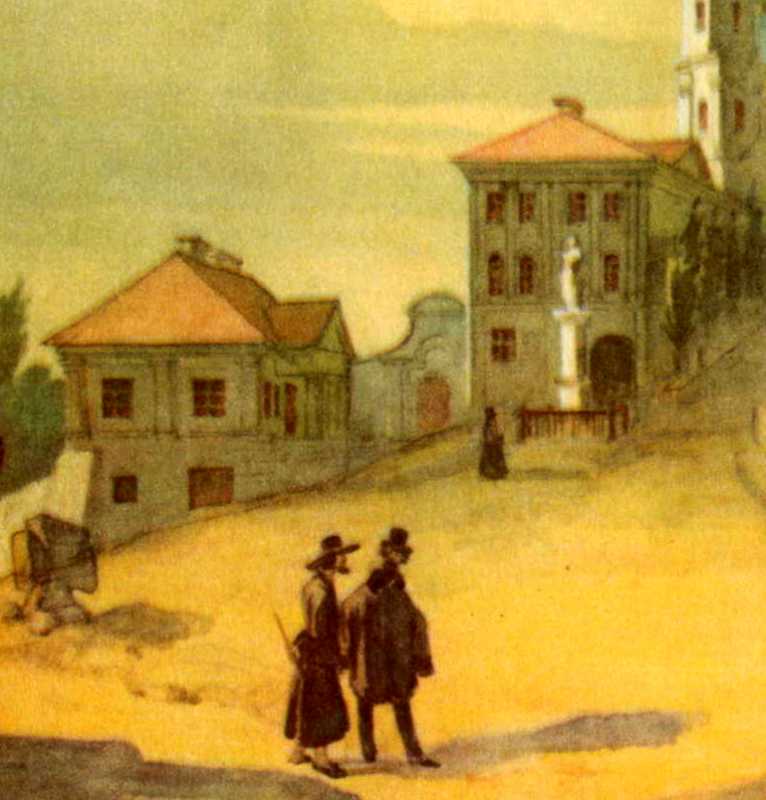 Taras Shevchenko. Building and bishop's house. A fragment of a picture "Pochaiv monastery from the east".