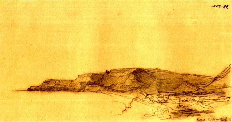 Taras Shevchenko. Kyzyl-Bulak. Stained paper, pencil (15,8 × 29,6 cm). [1 – 2. VIII 1849]. Taras Shevchenko National Museum, inv. g – 489.