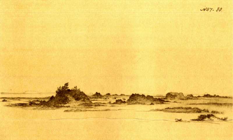 Taras Shevchenko. Nicholas island. Pencil on paper (14,1 × 22,9 cm). [Nicholas island]. [12 – 21.IX 1848; 22 – 30.VIII 1849]. Taras Shevchenko National Museum, inv. g – 461.