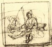 Sketch of Kazakh is one option to the picture "Kazakhs in a yurt" (see number 14, 57); inversely to it – silhouette peasant in the cap. Above him hand Shevchenko inscription: Oh sitted Cossack on the road // and patched up a shirt // near…