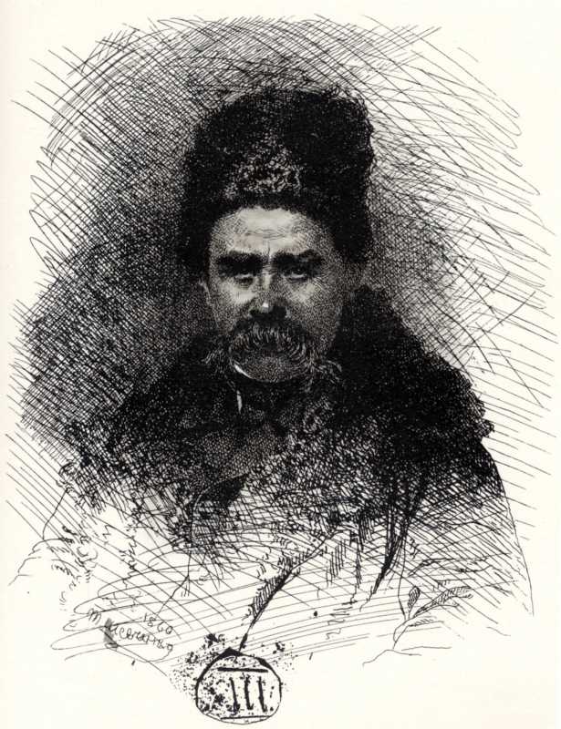 Lower left placed etched stroke author's signature and date: 1860 || T. Shevchenko. Under the portrait engraved monogram: Ш