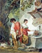Вторую копию этого рисунка Шевченко исполнил для В.А. Жуковского [Мацапура М. Новое в наследстве Тараса Шевченко // Украина. – 1951. – № 8. – С. 30]. Возможно, одна из его копий с названием «Итальянка у фонтана» в феврале 1888 г. экспонировалась на выставке в пользу вдов и сирот архитекторов в Академии художеств [Горленко В. Картины, рисунки и офорты Шевченко // Киевская старина. – 1888. – № 6. – С. 82]. С таким или похожим названием она вошла в литературу. К.В. Широцкий ее называет «Итальянка в колодца» [Широцкий К. К. Брюллов и Т. Шевченко // Украинская жизнь. – 1913. – № 12. – С. 54-59]. В каталогах фондов Русского музея (С.-Петербург) зарегистрировано под названием «Сцена у колодца». Такое разночтение названий дало основание исследователям, которые не знали, что существует две копии с акварели Брюллова, считать их различными произведениями [Айзеншток И. Судьба литературного наследства Т. Г. Шевченко // Литературное наследство. – 1935. – № 19/21. – С. 483; Раевский С.Е. Жизнь и творчество художника Тараса Шевченко. – X., 1939. – С. 43; Владимирский Г.Д. Предшественники русских живописцев-реалистов // Изобразительное искусство. – 1939. – № 2/3. – С. 17.].