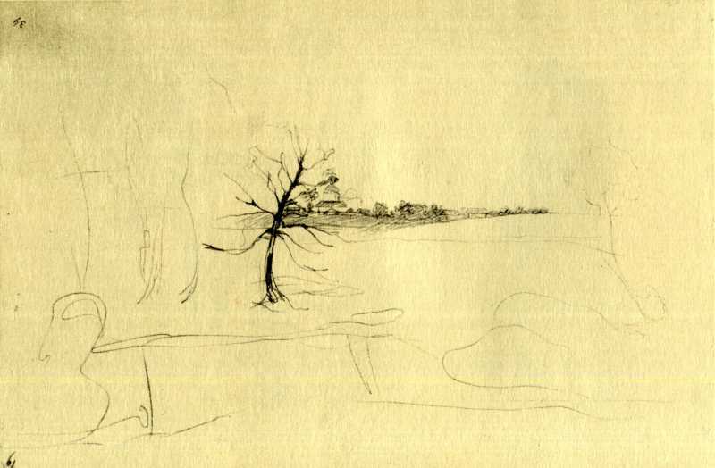 Т.Г.Шевченко. Пейзаж с церковью. Неоконченный набросок. Карандаш. [Не ранее мая 1843]. Институт литературы им. Т. Г. Шевченко НАН Украины, инв. № 106 (альбом 1839 – 1843 гг.)