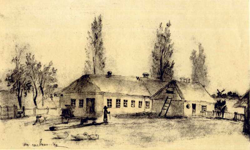 Т.Г.Шевченко. Двор на селе. Бумага, карандаш (12,7 × 20,9 см). [Лето] 1845. Национальный музей Тараса Шевченко, инв. № г – 431.