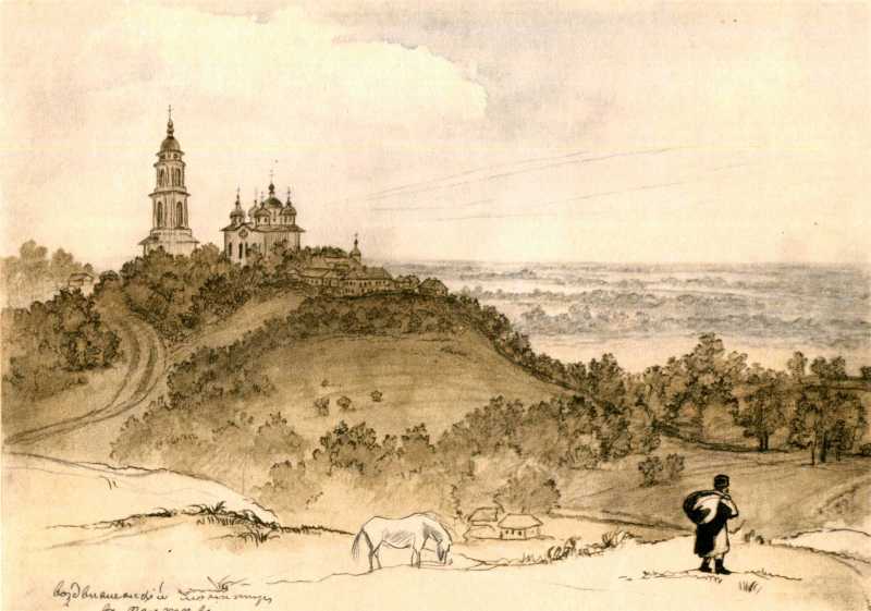 Слева внизу чернилами рукой Шевченко надпись: Воздвиженский монастырь в Полтаве.