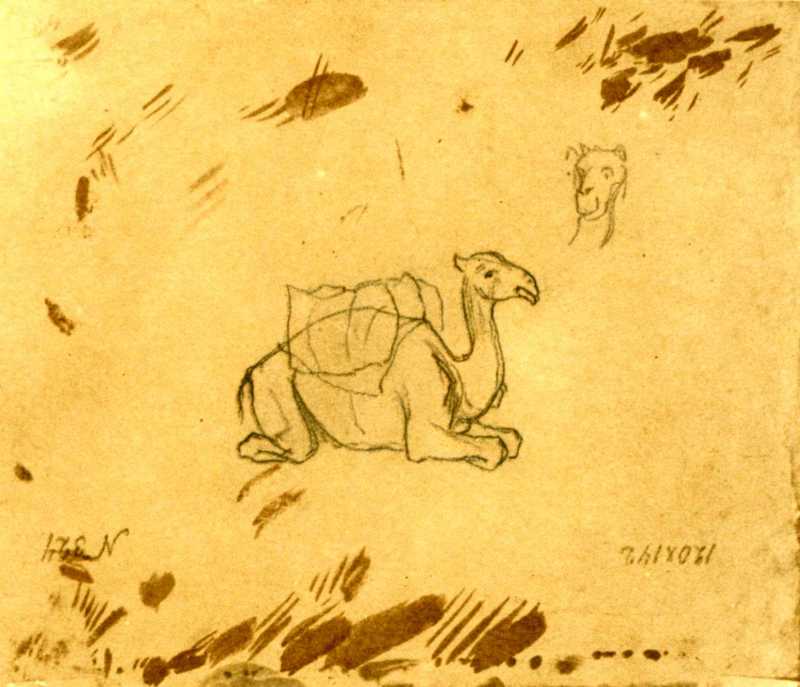 Т.Г.Шевченко. Верблюд. Голова верблюда. Наброски. Бумага, карандаш (12 × 14,3 см). [Новопетровское укрепление]. [1851 – VII 1857].