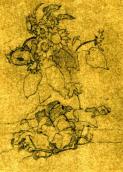 Т.Г.Шевченко. Фигура женщины, подсолнечник, листья тыквы и др. Этюды и наброски. Тонированная бумага, карандаш (12,9 × 34,3 см). [Новопетровское укрепление]. [Лето 1854]. Государственный музей Т. Г. Шевченко АН УССР, Киев, инв. № г – 582.