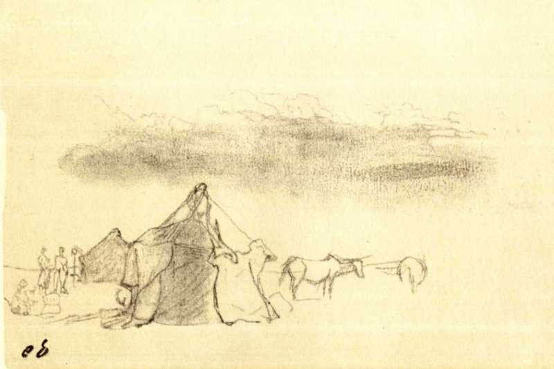Изображение экспедиционного лагеря при переходе от Орска до Раима см. также № 8, 64, 70, 71, 95, 143, 145, 146, 147.