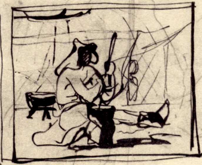 Т.Г.Шевченко. Казах в юрте. Фрагмент л. 1 альбома 1846 – 1850 гг. № 108 |