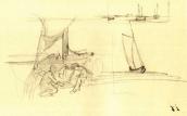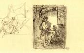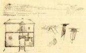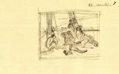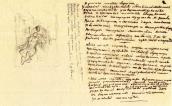 Рисунок на обороте л. 7 (шаржированный автопортрет во весь рост) и наброски на обеих внутренних страницах обложки (штоф, здание и бутылка) не репродуцируются.