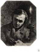 Офорт выполнен с автопортрета 1845 г., местонахождение которого не установлено.