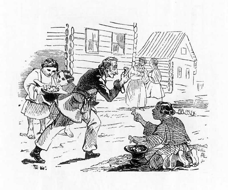 Иллюстрация к тексту на странице 212 книги. В селе Кончанское, родовом имении Суворова, куда его отправил Павел I, полководец во времена досуга общался с крестьянами, занимался благотворительностью, играл вместе с крестьянскими детьми. На иллюстрации изображен детскую игру в бабки, в которой участвует Суворов.