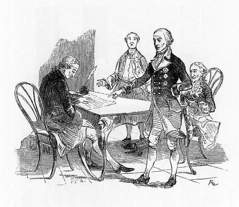 Иллюстрация к тексту на страницах 195 – 196 книги. На рисунке изображен Суворова, который после подавления польского восстания 1794 г. и взятия Варшавы посетил короля Станислава, показав ему свое уважение. Впоследствии, после раздела Польши между Австрией, Пруссией и Россией, королю Станиславу пришлось отречься от короны.