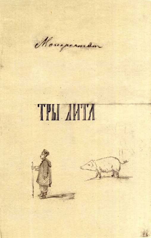 Т.Г.Шевченко. Надпись «Три года», наброски: фигура крестьянина с палкой, свинья. Лист [2] альбома «Три года».