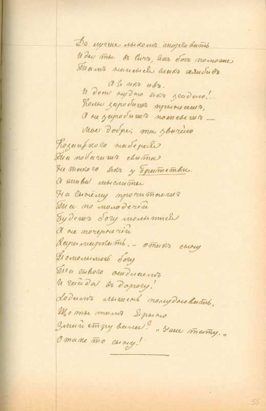 Альбом Тараса Шевченка «Три літа». С. 103 – продовження поеми «Сліпий» з рядка «Де лучше лихом торговать…»