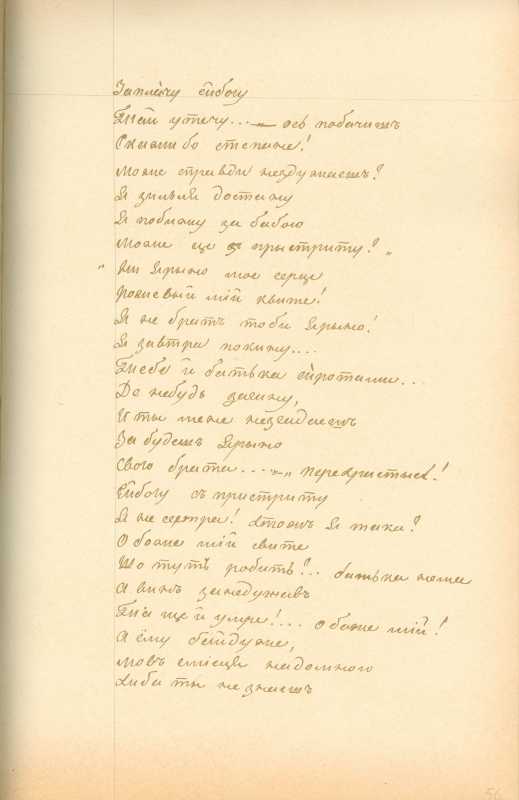 Альбом Тараса Шевченка «Три літа». С. 105 – продовження поеми «Сліпий» з рядка «Заплачу, єй-богу…»