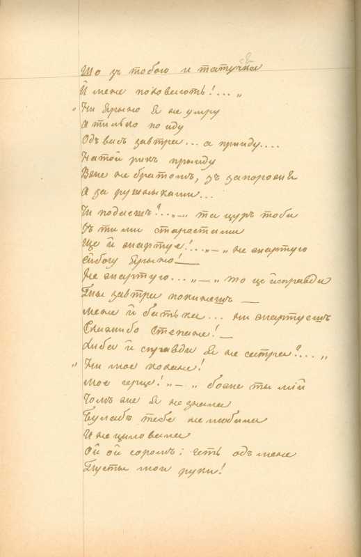 Альбом Тараса Шевченка «Три літа». С. 106 – продовження поеми «Сліпий» з рядка «Що з тобою і татуся…»