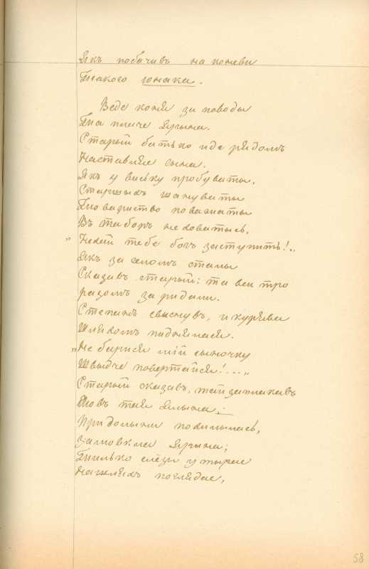 Альбом Тараса Шевченка «Три літа». С. 109 – продовження поеми «Сліпий» з рядка «Як побачив на коневі…»