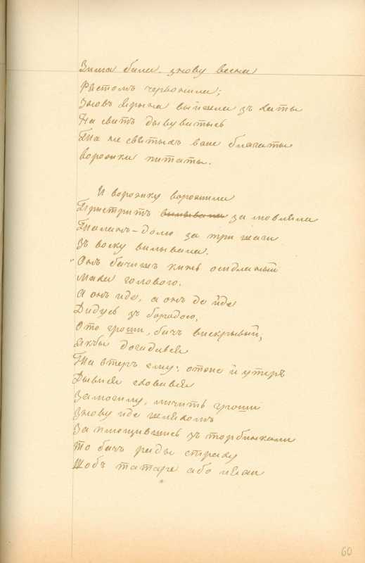 Альбом Тараса Шевченка «Три літа». С. 113 – продовження поеми «Сліпий» з рядка «Зима біла. Знову весна…» |
