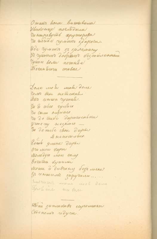 Альбом Тараса Шевченка «Три літа». С. 12 – продовження поезії «У неділю не гуляла…» з рядка «Отак вона вишивала…» |