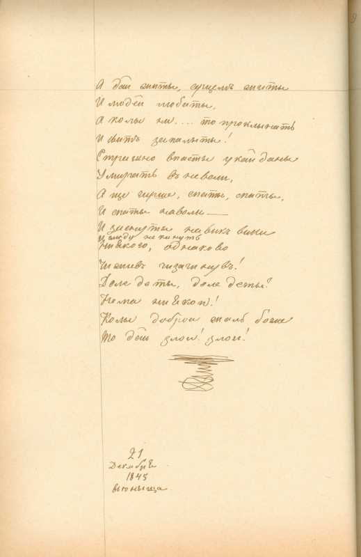 Альбом Тараса Шевченка «Три літа». С. 139 – закінчення поезії «Минають дні, минають ночі…» з рядка «А дай жити, серцем жити…»
