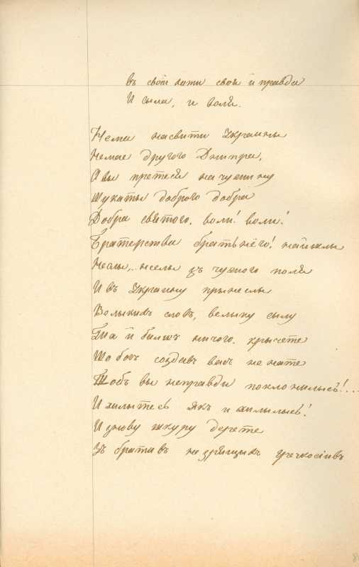 Альбом Тараса Шевченка «Три літа». С. 149 – продовження поеми «І мертвим, і живим…» з рядка «В своїй хаті своя й правда…» |