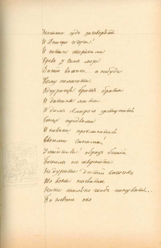 Альбом Тараса Шевченка «Три літа». С. 151 – продовження поеми «І мертвим, і живим…» з рядка «Настане суд, заговорять…» |