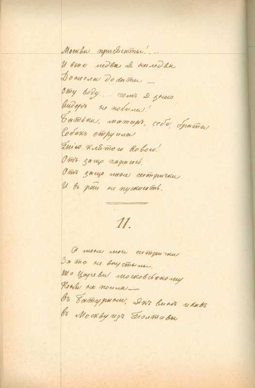 Альбом Тараса Шевченка «Три літа». С. 167 – продовження поеми «Великий льох» з рядка «Москві присягати…» |
