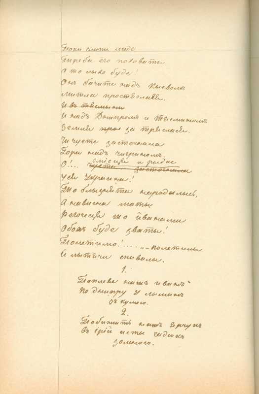 Альбом Тараса Шевченка «Три літа». С. 181 – продовження поеми «Великий льох» з рядка «Поки сліпі люде…» |