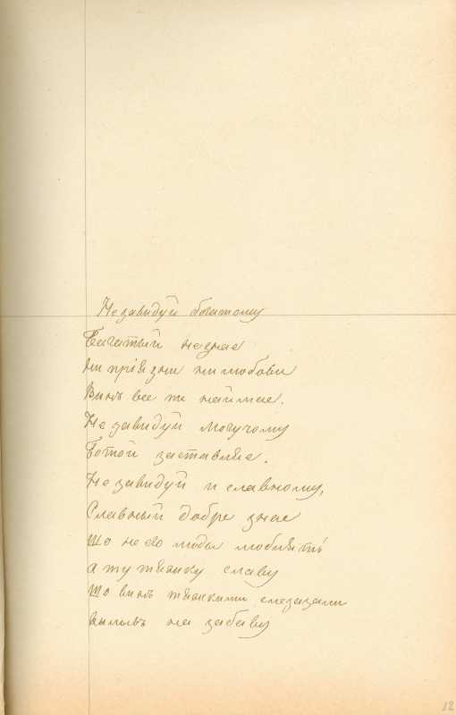Альбом Тараса Шевченка «Три літа». С. 21 – початок поезії «Не завидуй багатому…»