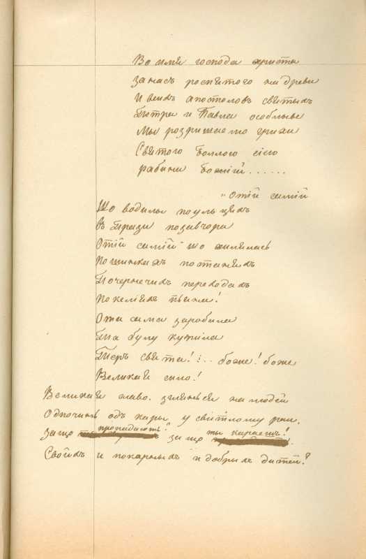 Альбом Тараса Шевченка «Три літа». С. 210 – продовження поеми «Єретик» з рядка «Во ім’я Господа Христа…»