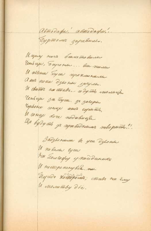 Альбом Тараса Шевченка «Три літа». С. 218 – продовження поеми «Єретик» з рядка «Автодафе! автодафе…»
