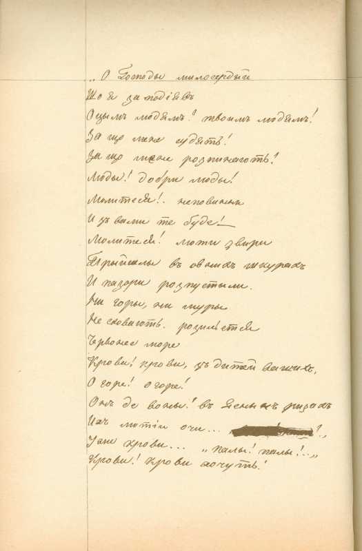 Альбом Тараса Шевченка «Три літа». С. 219 – продовження поеми «Єретик» з рядка «О Господи милосердий…»