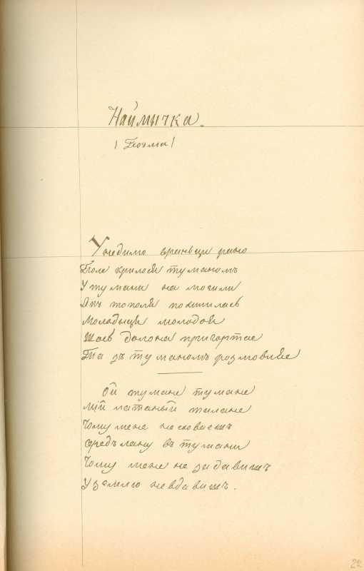 Альбом Тараса Шевченка «Три літа». С. 40 – початок поеми Наймичка