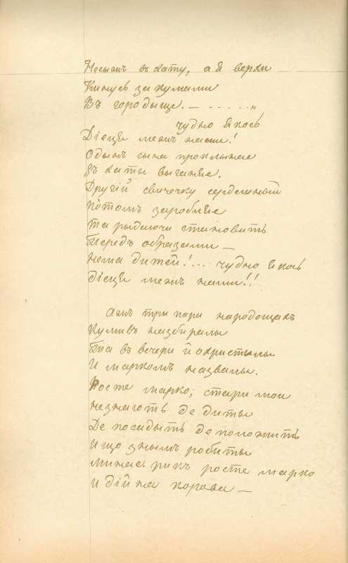 Альбом Тараса Шевченка «Три літа». С. 47 – продовження поеми «Наймичка» з рядка «Неси ж в хату, а я верхи…»