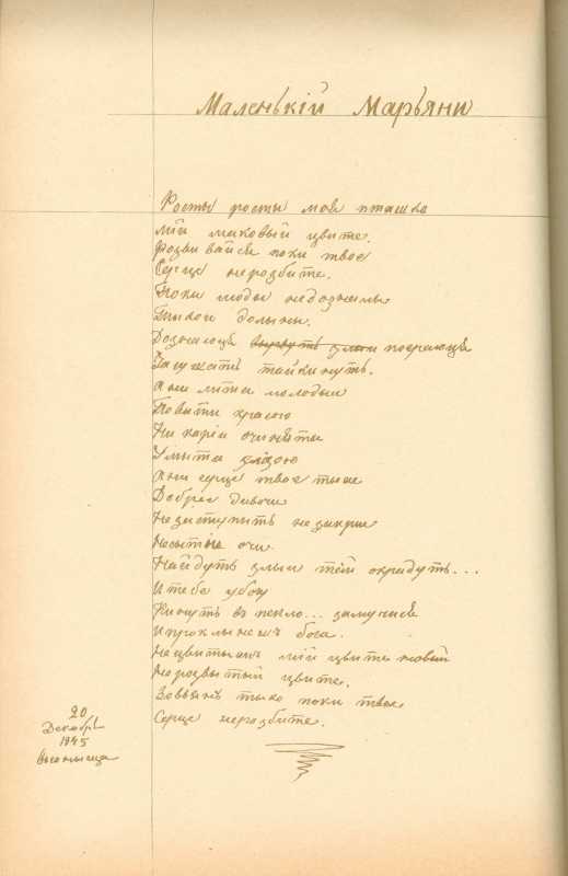 Альбом Тараса Шевченка «Три літа». С. 65 – поезія «Маленькій Мар’яні»