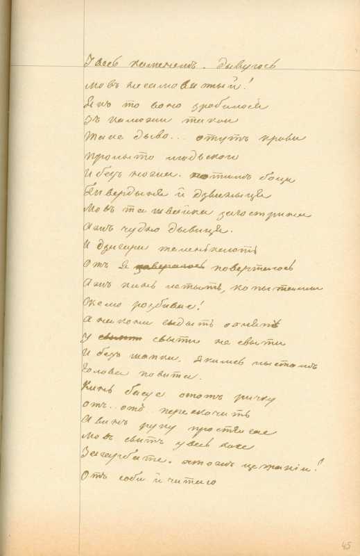 Альбом Тараса Шевченка «Три літа». С. 85 – продовження поеми «Сон» з рядка «Увесь каменем. Дивуюсь…» |