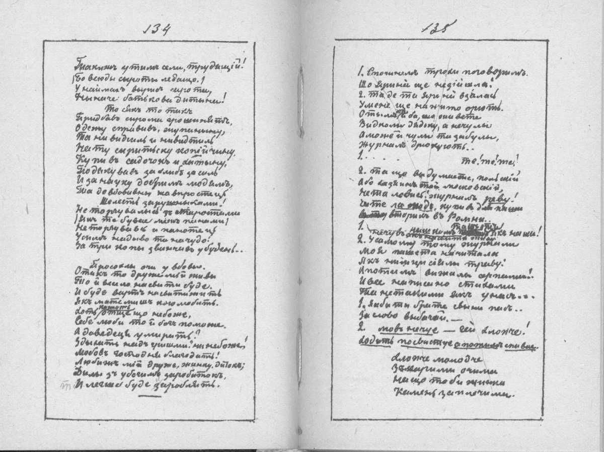 С. 134 – 135 Таки ж у тім селі, трудящий…«Мала книжка» Тараса Шевченка. С. 134 – 135 – продовження поеми «Москалева криниця» з рядка «Таки ж у тім селі, трудящий…» |