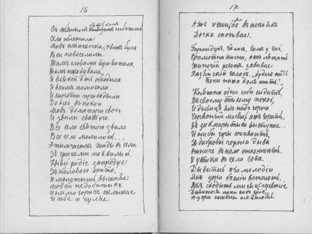 С. 16 – 17 З п’яним батьком не бачилась…«Мала книжка» Тараса Шевченка. С. 16 – 17 – продовження поеми «Княжна» з рядка «З п’яним батьком не бачилась…» |