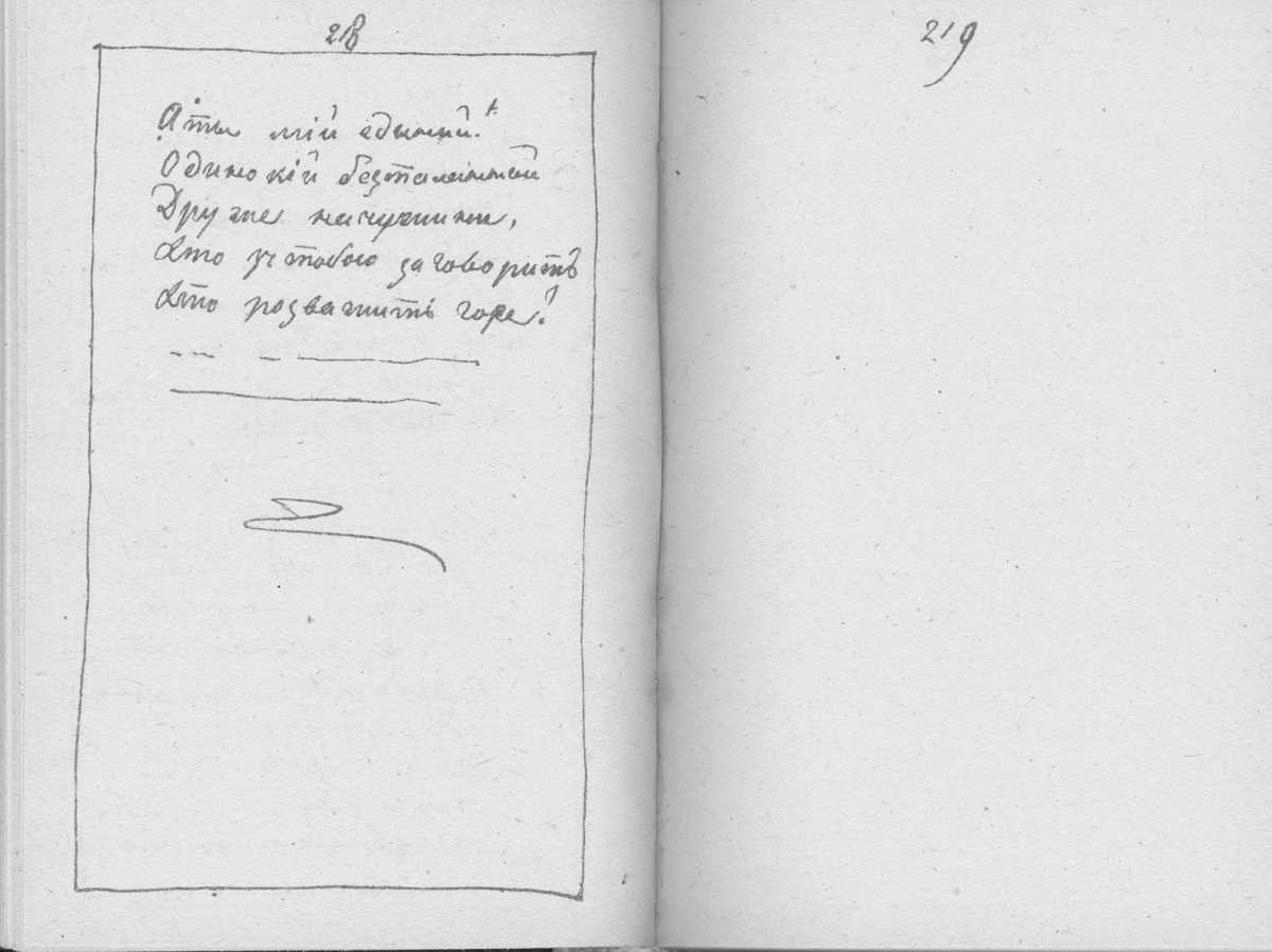 С. 218 – 219 А ти, мій єдиний…«Мала книжка» Тараса Шевченка. С. 218 – закінчення поезії «Ми восени таки похожі…» з рядка «А ти, мій єдиний…»; с. 219 – порожня |