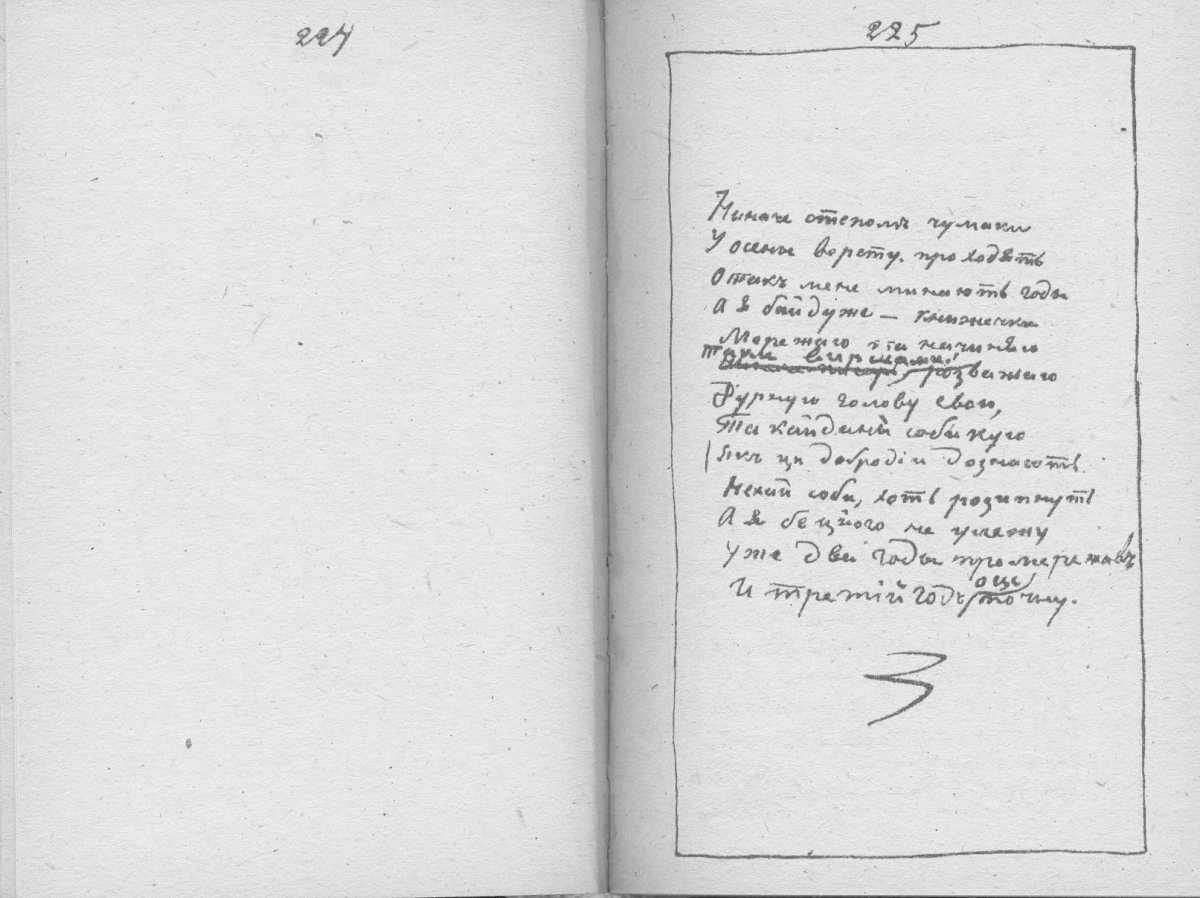 «Мала книжка» Тараса Шевченка. С. 224 – порожня; с. 225 – поезія «Неначе степом чумаки…»