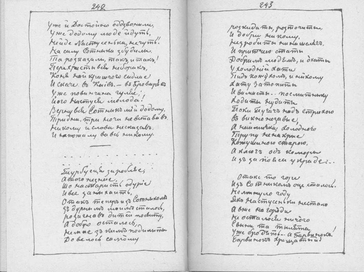 С. 242 – 243 Уже й «Достойно» оддзвонили…«Мала книжка» Тараса Шевченка. С. 242 – 243 – продовження поеми «Сотник» з рядка «Уже й «Достойно» оддзвонили…» |