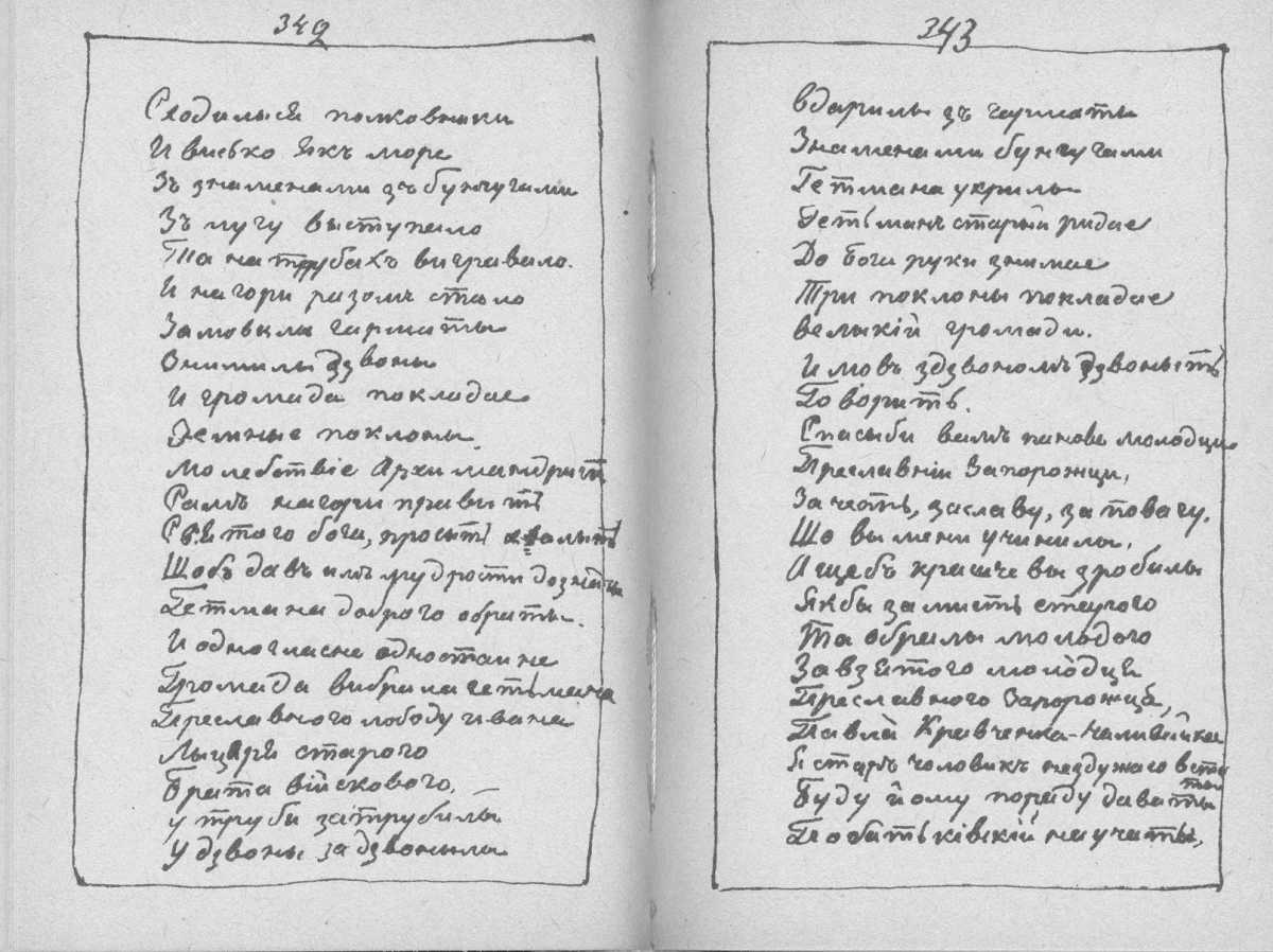 С. 342 – 343 Сходилися полковники…«Мала книжка» Тараса Шевченка. С. 342 – 343 – продовження поезії «» з рядка «Сходилися полковники…» |