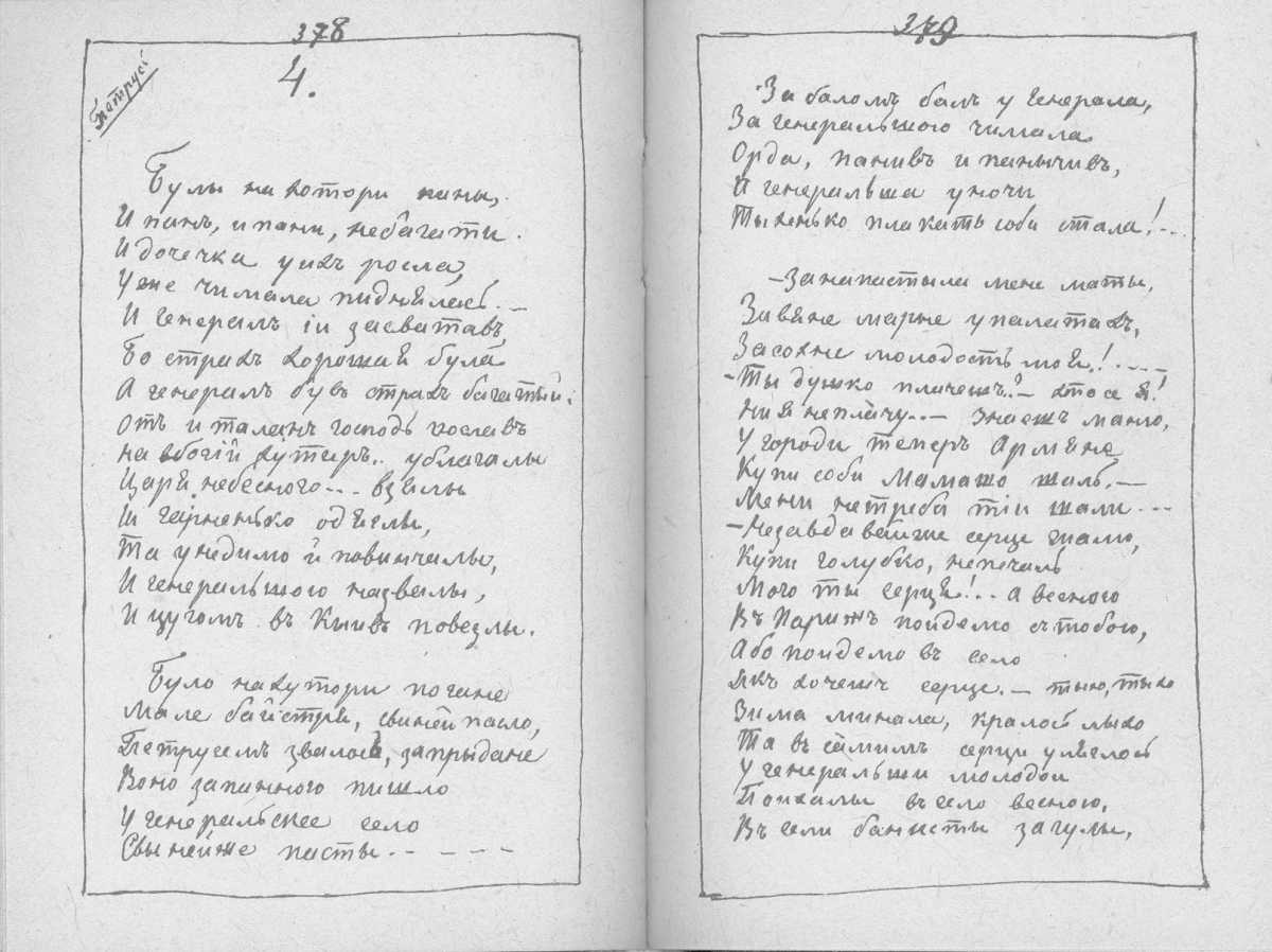 С. 378 – 379 Петрусь«Мала книжка» Тараса Шевченка. С. 378 – 379 – початок поеми «Петрусь» |