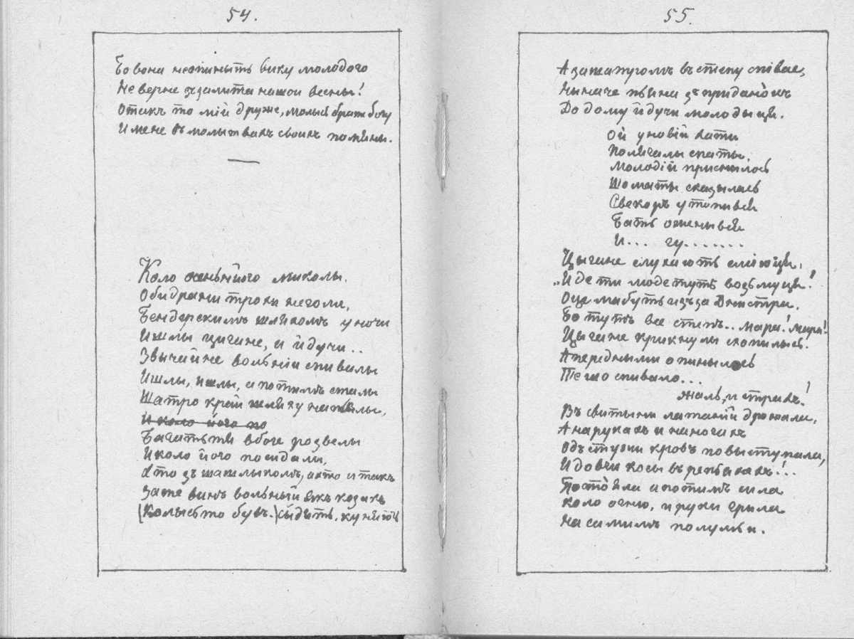 С. 54 – 55 Бо вона не спинить віку молодого…«Мала книжка» Тараса Шевченка. С. 54 – 55 – продовження поеми «Відьма» з рядка «Бо вона не спинить віку молодого…» |