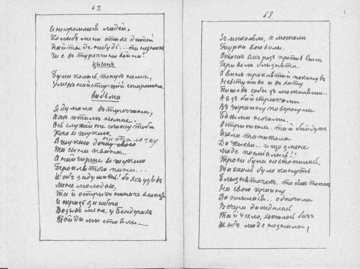 «Мала книжка» Тараса Шевченка. С. 62 – 63 – продовження поеми «Відьма» з рядка «І не соромлюся людей…»