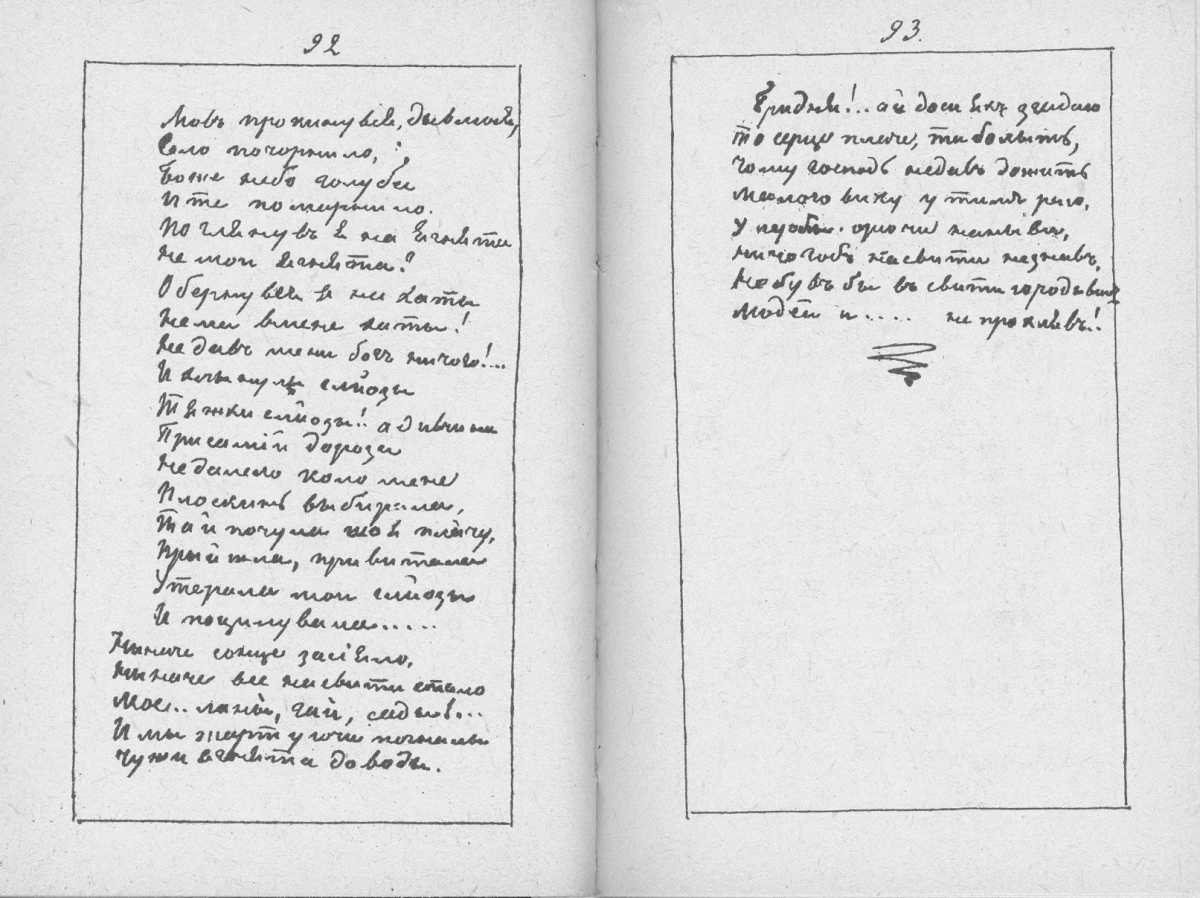 С. 92 – 93 Мов прокинувся, дивлюся…«Мала книжка» Тараса Шевченка. С. 92 – 93 – закінчення поезії «Мені тринадцятий минало…» з рядка «Мов прокинувся, дивлюся…» |